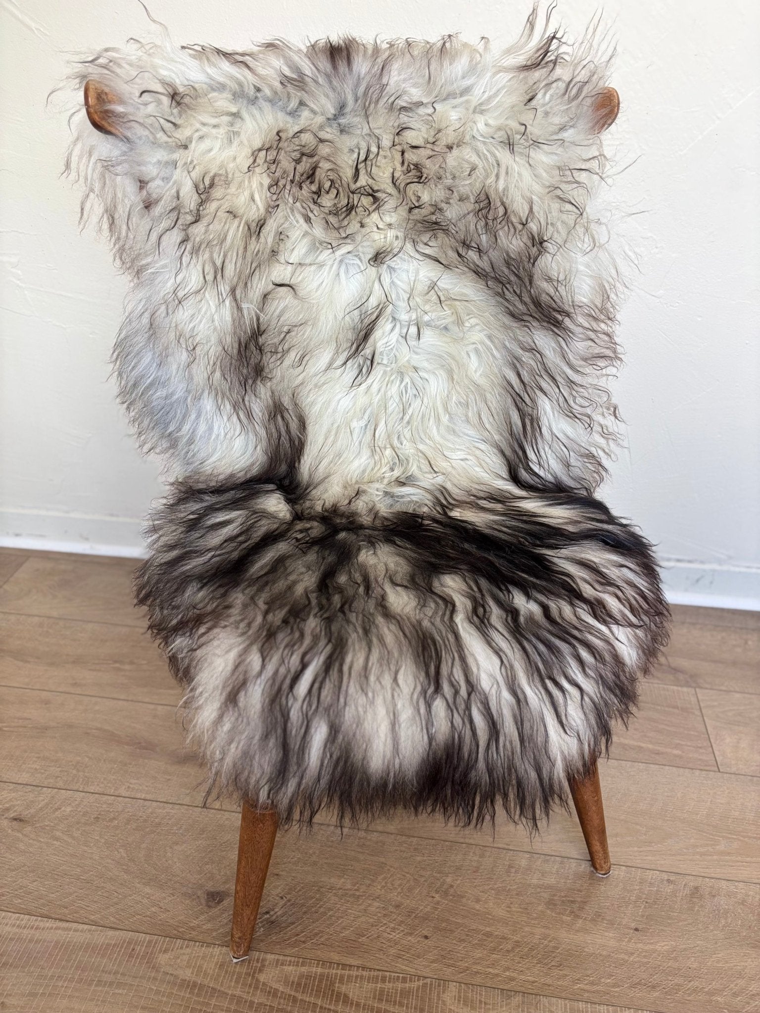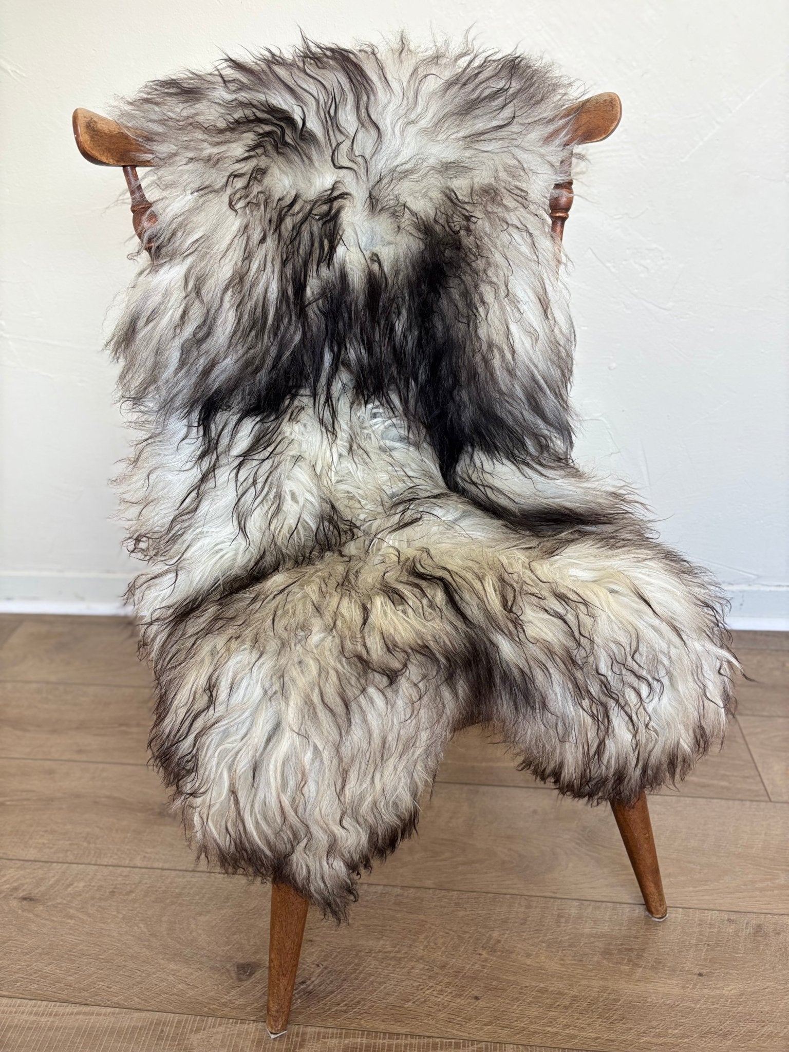 All natural coloring of silver tones transitioning sporadically to black tips. Dye free.